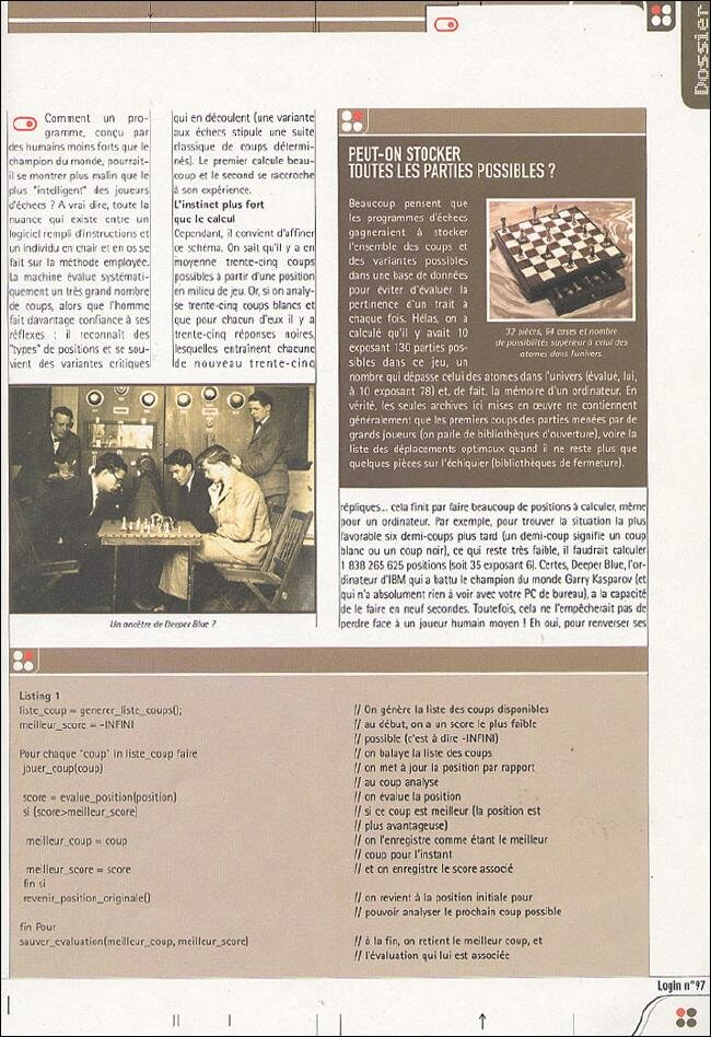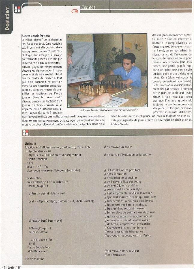 Article sur "Comment pensent les jeux d'échecs" rédigé par Stéphane Vanaker. |